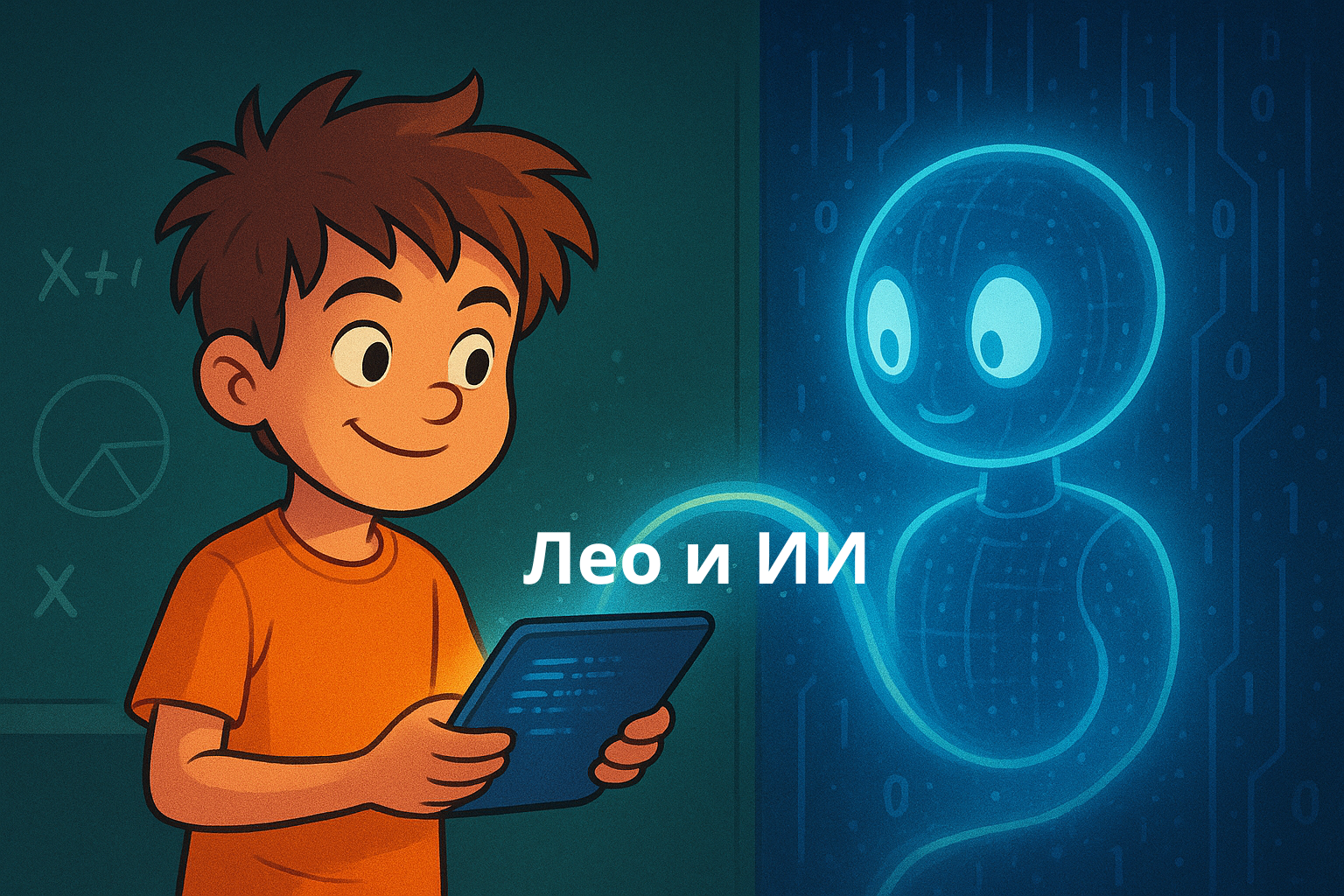 Главный герой курса – мальчик Лео, который не хочет учиться, а хочет управлять ИИ. А Исин — это искусственный интеллект, который хочет научиться творчеству, как это делает человек, и учится у Лео.